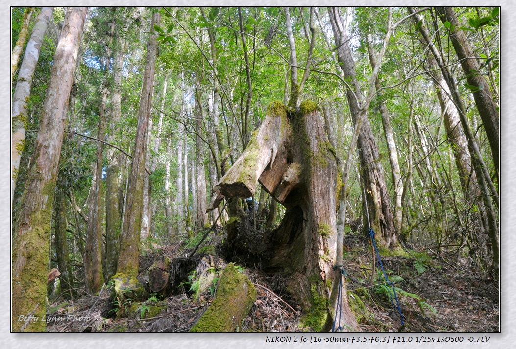 我們在這棵倒木邊混了好一陣, 一直繞來繞去研究, 忍不住嘖嘖稱奇, 不過還是要去面對最後一段路…