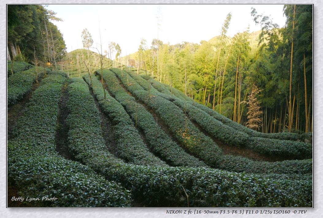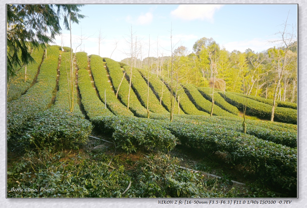 吼… 早晨的茶園真的超美, 但周圍樹林的暗影讓曝光變得很難搞定