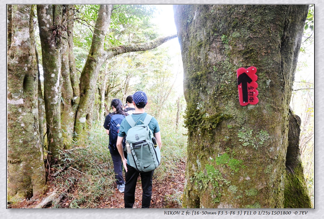 轉頭看見藏在樹林後的山頭… 來過的朋友說最後攻頂的一段不輕鬆… 頭都已經洗到這邊來了, 也只能衝啦!