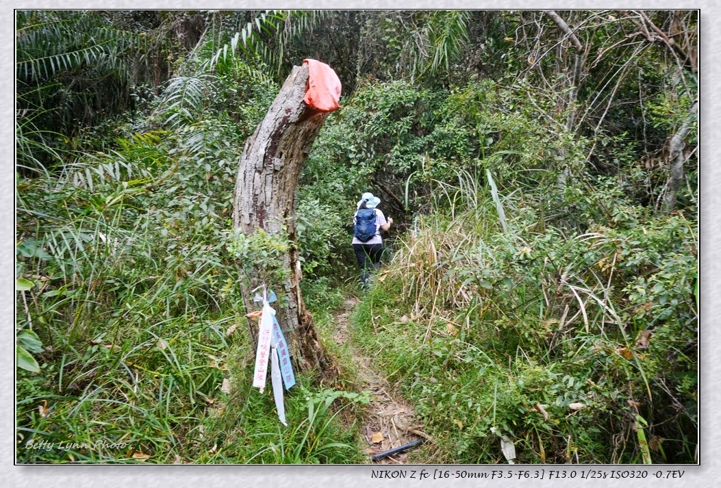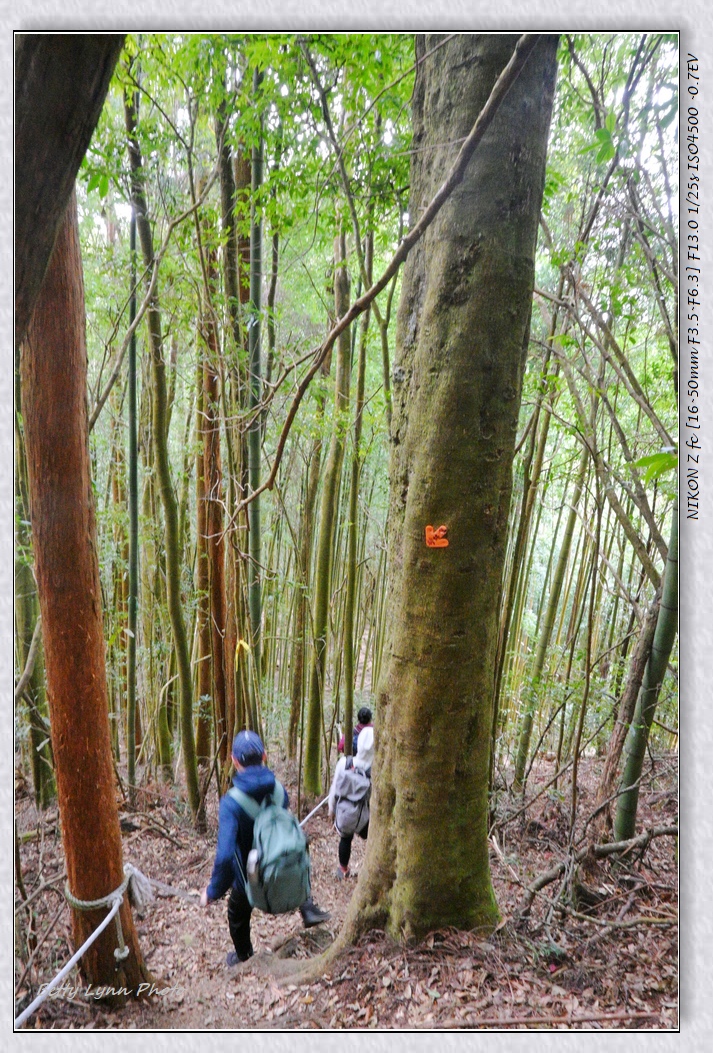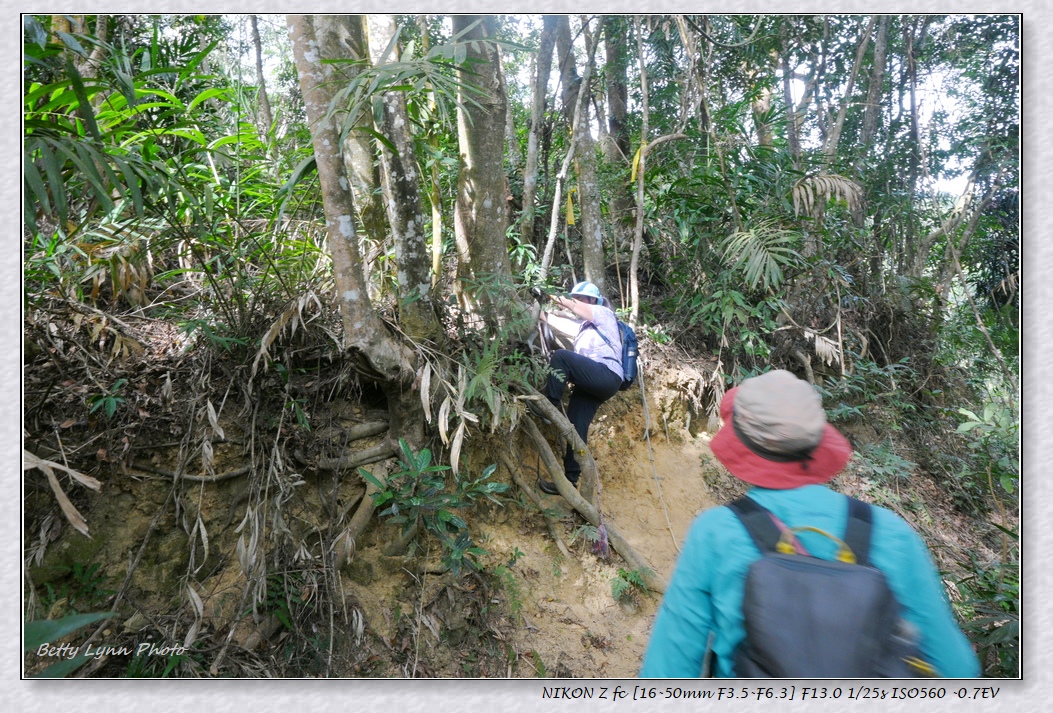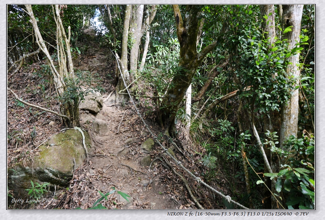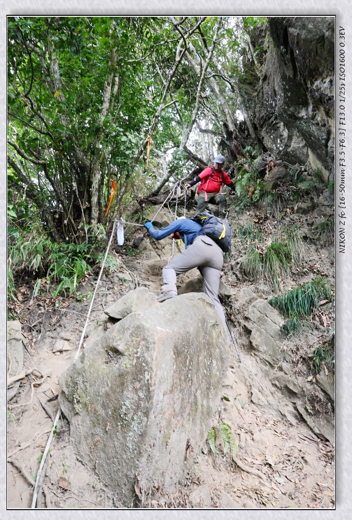 這會兒進到竹林… 看到又是綁了輔助繩的陡坡, 嘆氣的當下覺得還真是不出意料啊~~