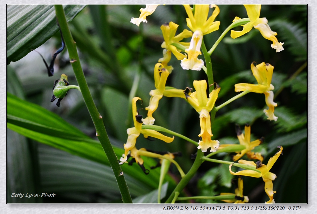 路上發現一株黃花肖頭蕊蘭 (by google 智慧鏡頭)… 整株開滿了亮麗的黃花, 可惜花期快過了, 邊角已經開始蔫了
