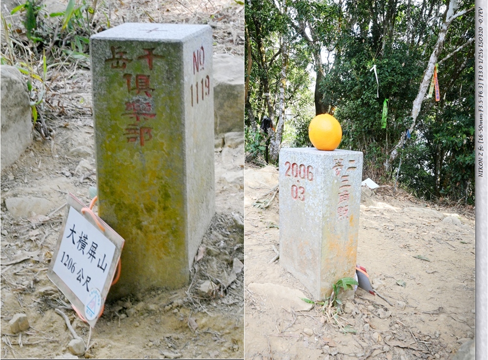 終於上來啦! 大橫屏山標高1206M,太平區的第一高峰,二等三角點#1119號基石,小百岳#045… 可惜的是山頂的展望全被樹根草給擋住了…