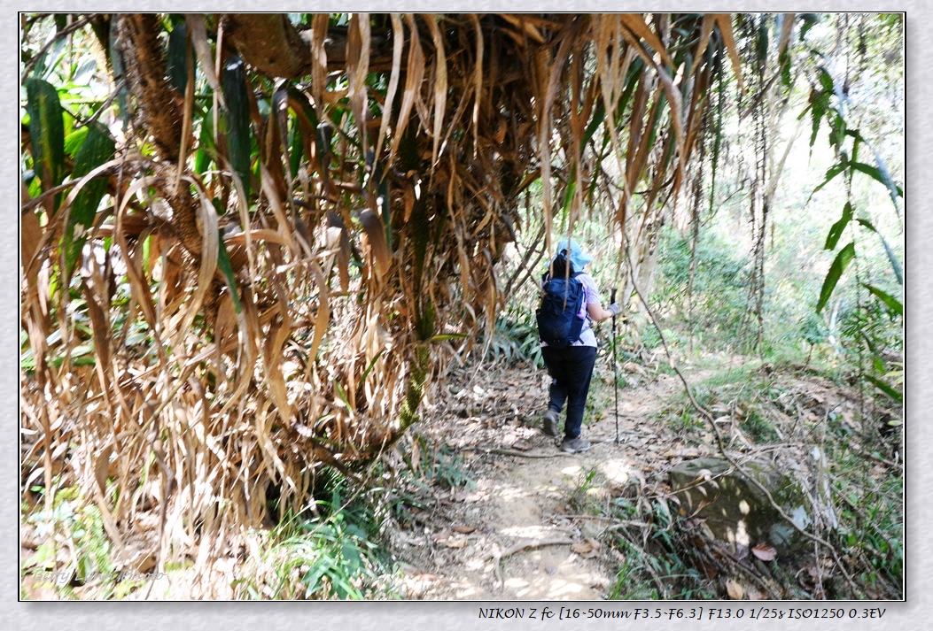 這整條步道, 除了前面1/5的產業道路 & 後面1/5的岩石稜線, 中間的3/5都可以看到黃藤的存在, 而且最夭壽的是他們全都杵在狹小的過道, 或是轉彎的突處, 平常爬山小心腳下就好, 在這裡雙眼要上下左右來回狂掃, 深怕一不注意就給自己紮上幾個窟窿…
