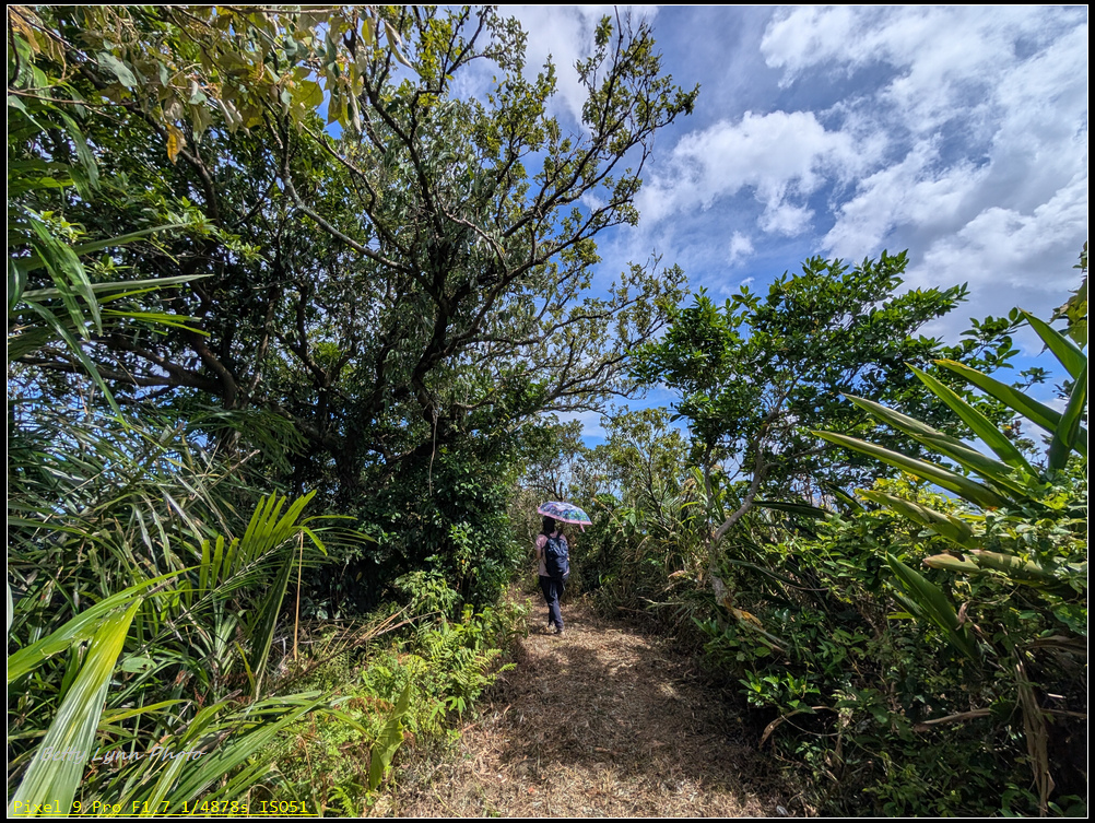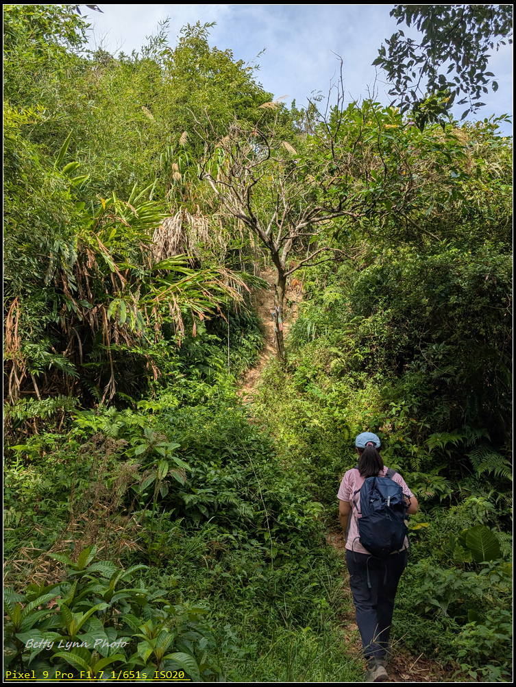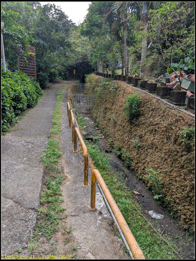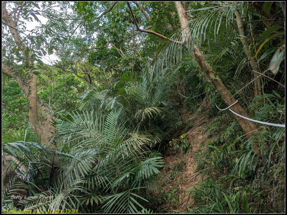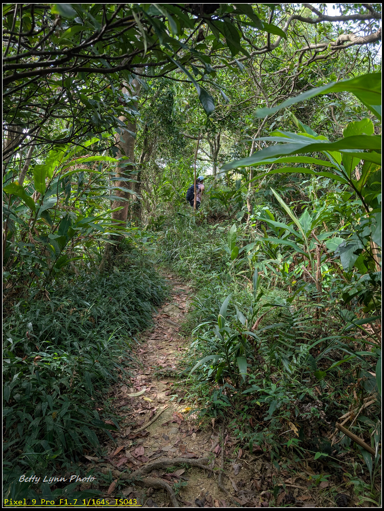 我很愛用手機的0.5倍廣角, 可以show出路徑的周邊整體感, 缺點是垂直的部分被壓縮, 這裡其實是長直陡上, 結果看起來很矮又粉平…
