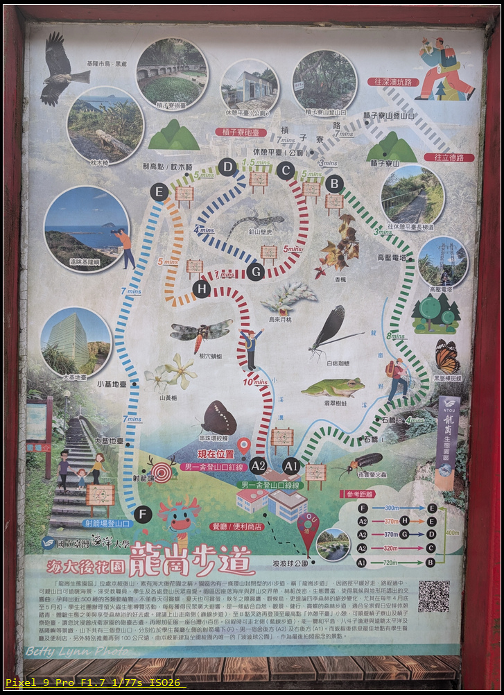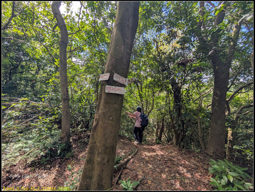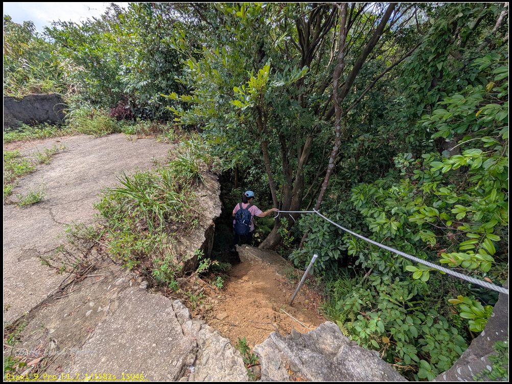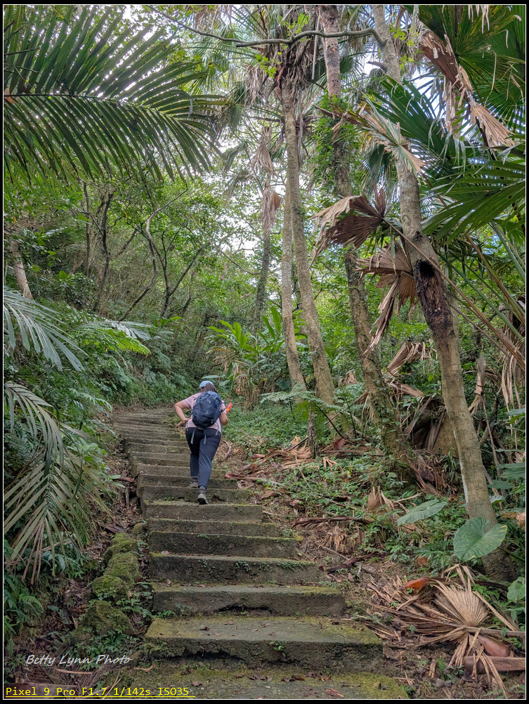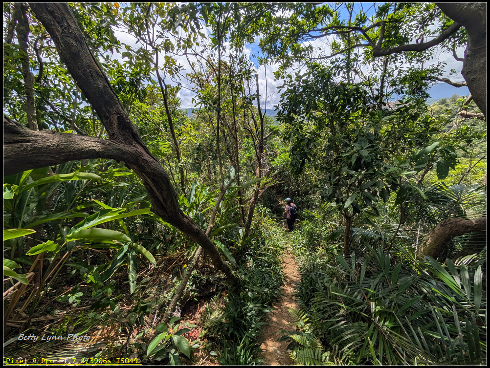 我很愛用手機的0.5倍廣角, 可以show出路徑的周邊整體感, 缺點是垂直的部分被壓縮, 這裡其實是長直陡上, 結果看起來很矮又粉平…
