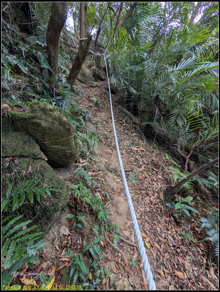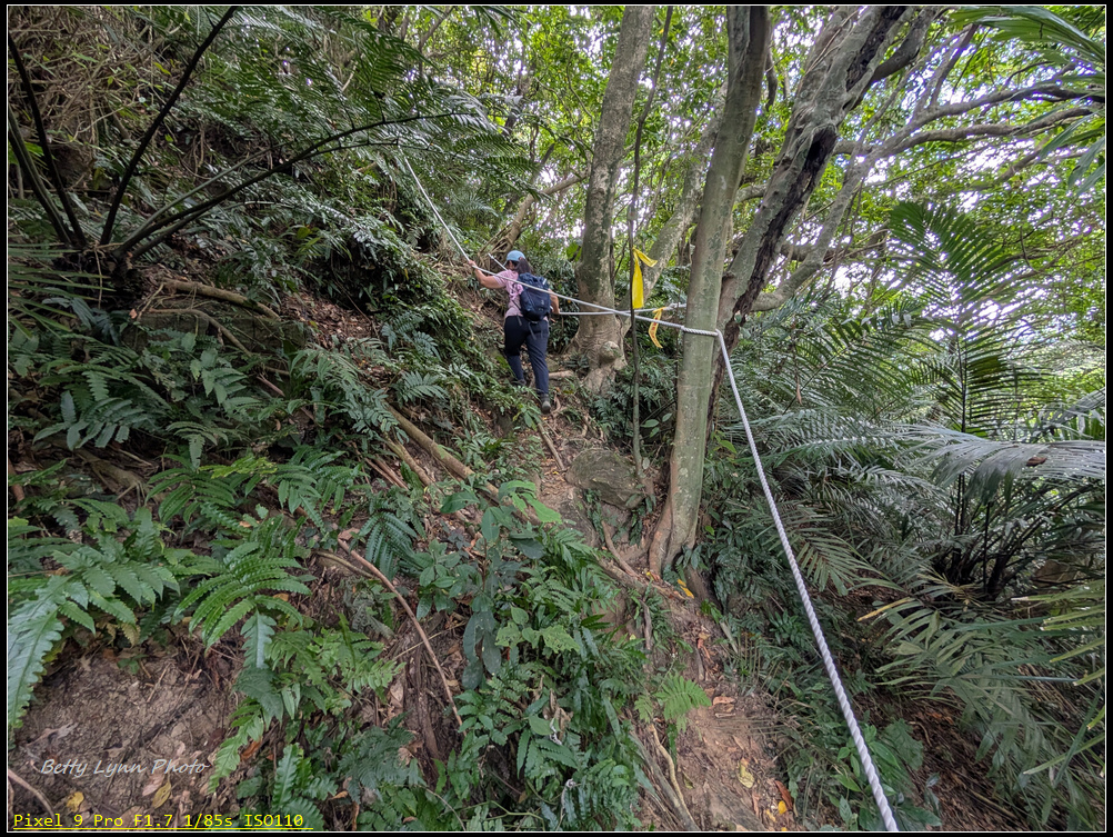 山友告訴我們這條步道剛剛被整個整理過, 除了草, 繩子也全換新, 我們走了一段後, 就真的超感謝這些山友志工, 而且慶幸我們來時間的很都厚, 不然可能根本不敢走…