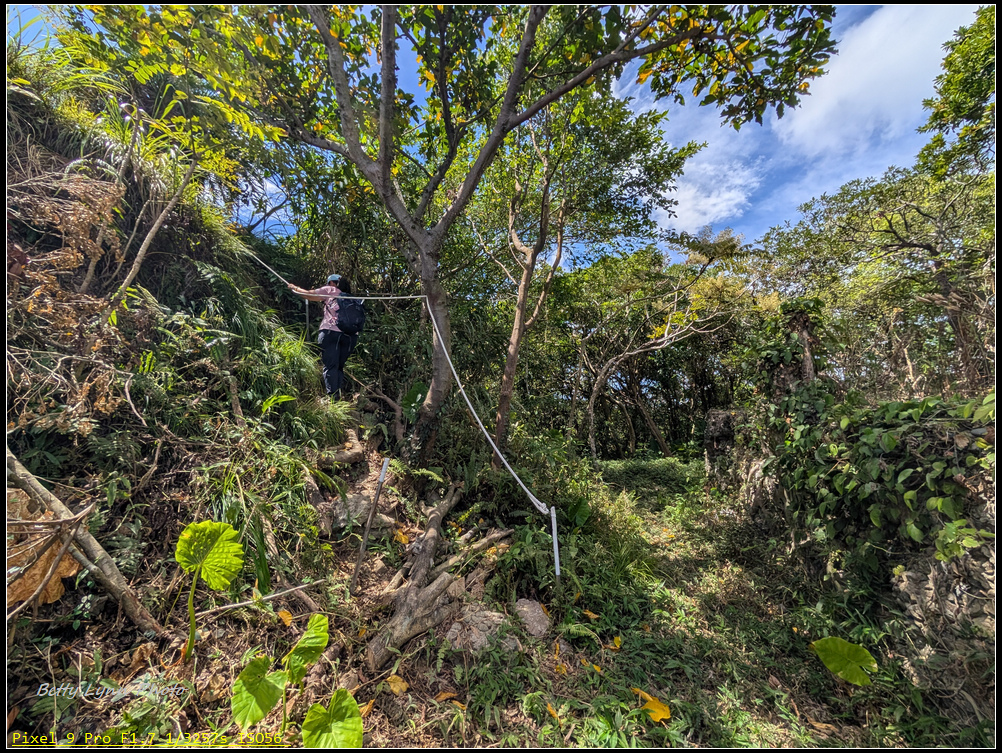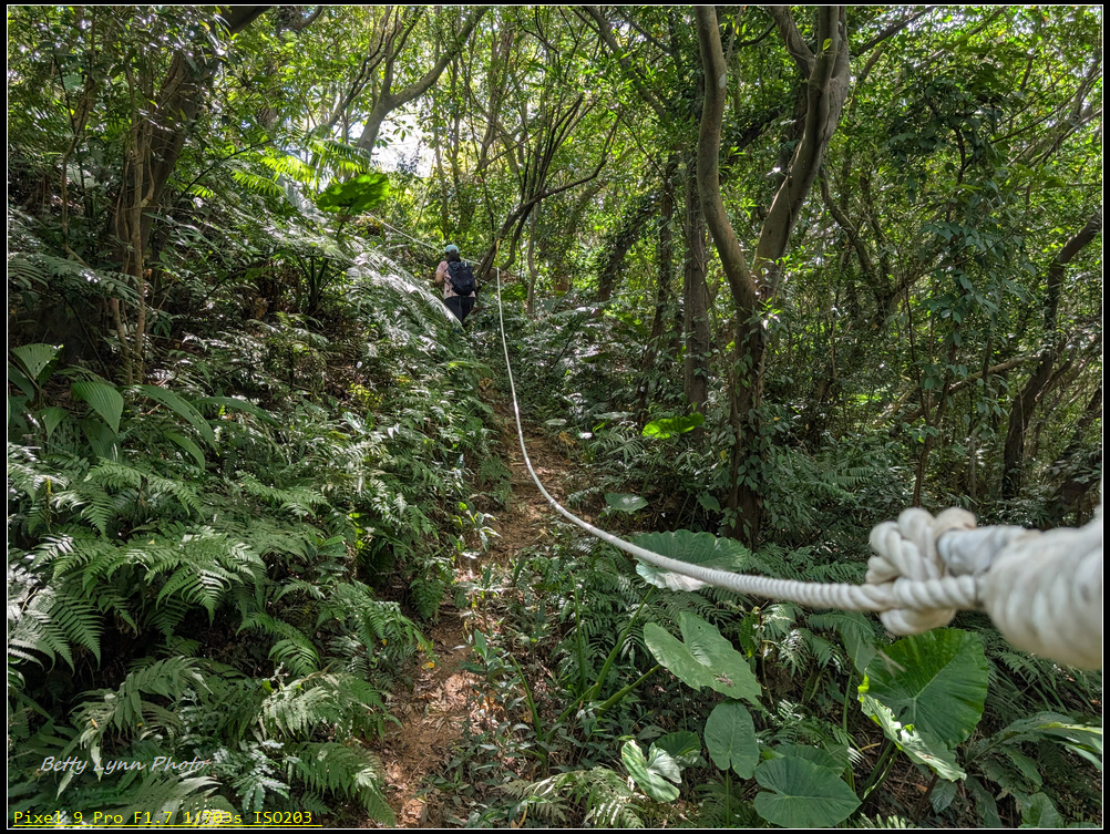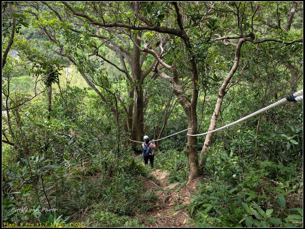 本來以為今天是超輕鬆行程, 沒想到晚節不保, 後段路直接陷入拉繩地獄, 下要拉, 上也要拉, 而且這一路是一連串的山頭, 我們就不停上了下, 下了上, 看到一段又一段的繩子, 只能腦袋放空眼神死…