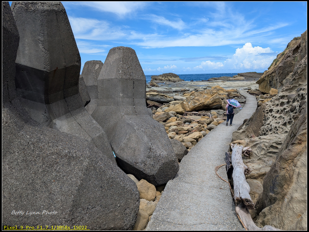 休息一陣之後, 我們再度出門, 頂著中午的烈陽, 踢了近半小時的馬路, 終於來到大坪海岸