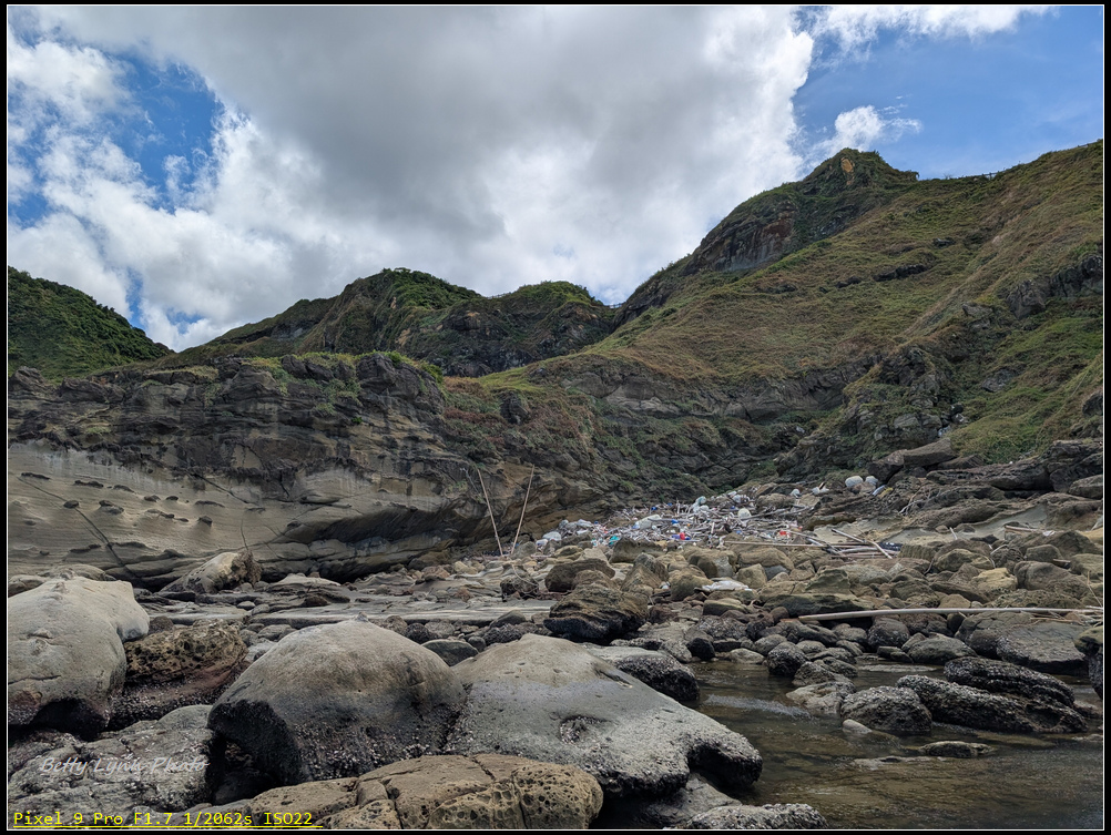 崖壁上面就是望幽谷濱海步道, 問題是下方的海岸邊竟然全是垃圾… 真是糟糕啊!