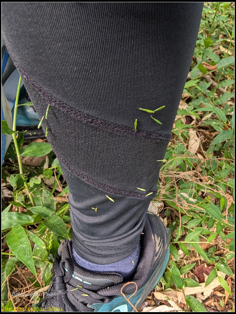 我今天穿的褲子超容易惹到草, 走沒多久就發現我被粘上一堆, 最慘的是還戳到我屁股, 一走就覺得一直被戳, 沿路狂抓屁股又抓不下來, 只好找朋友求救, 但這種草一拔會留下小小的下半段繼續戳在裡面, 所以… 我一直到回到家拿針才真正整個拔除…