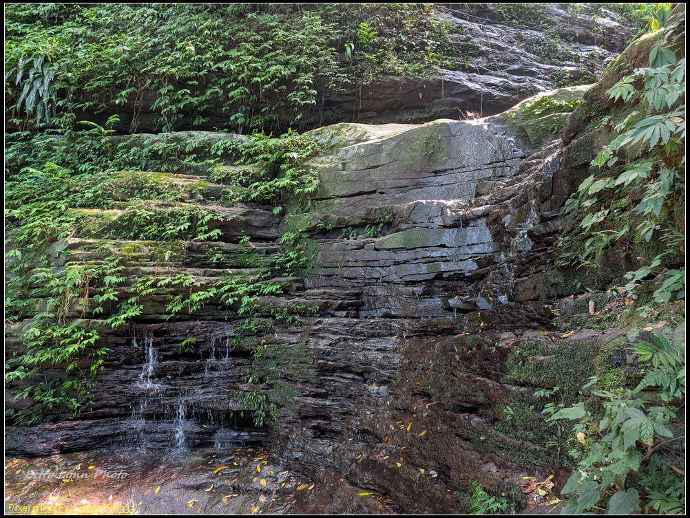 茄苳瀑布第一層… 水少的好可憐, 但至少比秀峰瀑布好一些, 至少有看到涓涓流水