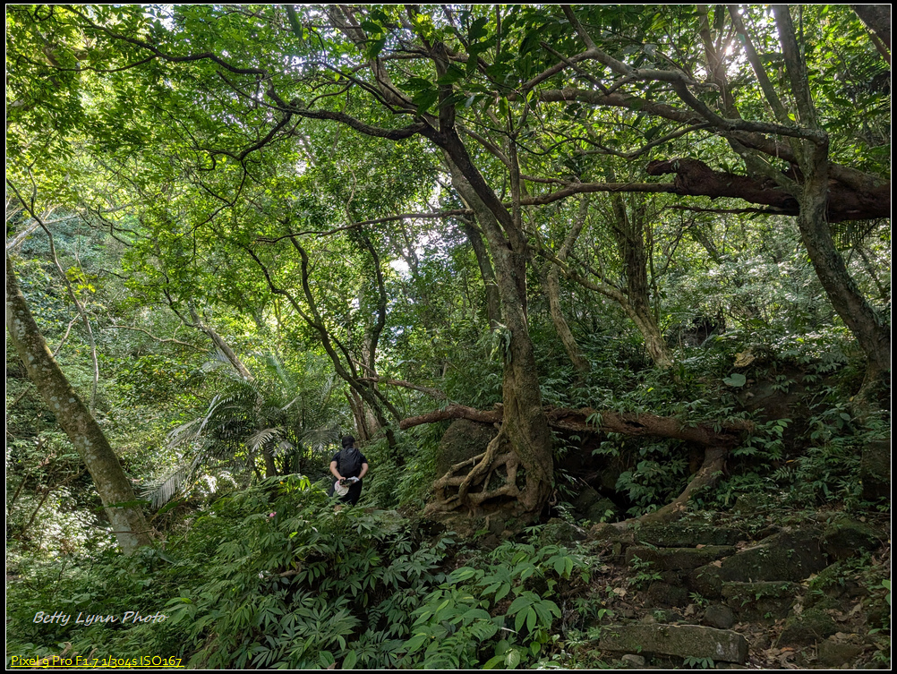 這段古道沿著茄苳溪走, 但今天的溪水就是一整個乾的, 完全沒有沿溪走的清涼感