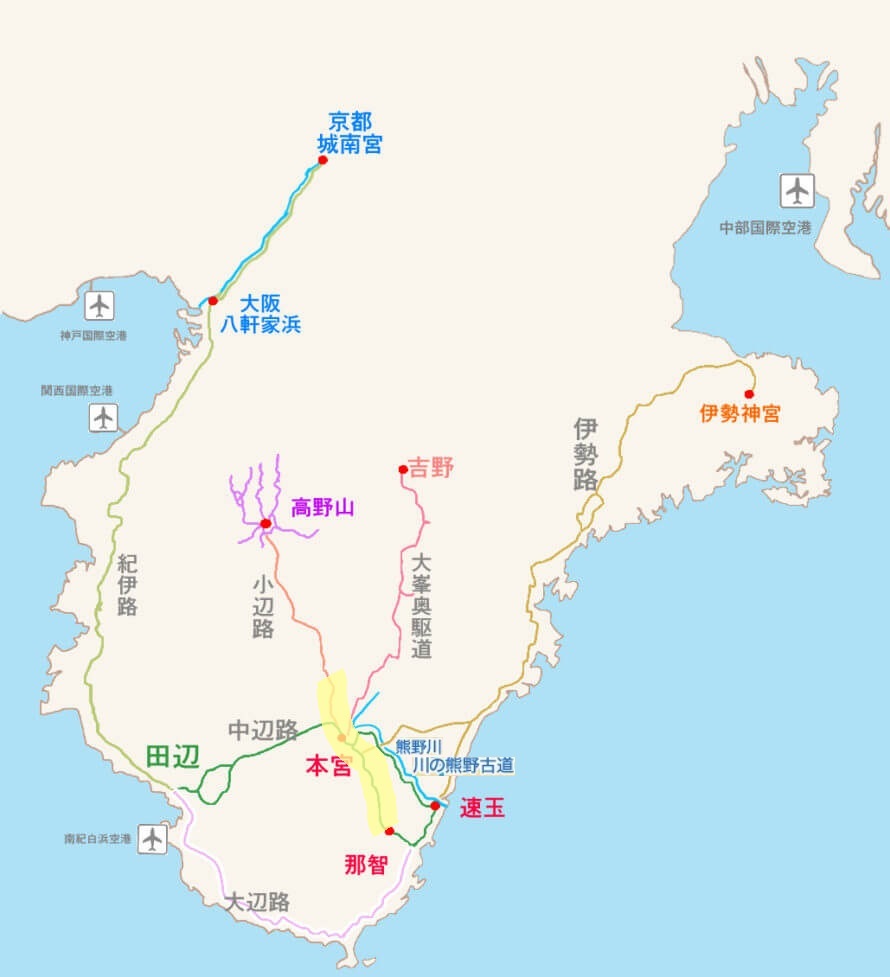* 熊野参詣道包括 : 伊勢路、大辺路、中辺路、小辺路、紀伊路(*非世界遺產)