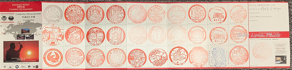 41個押印章我們只有蓋到26個, 青岸渡寺因為蓋壞了, 被我重蓋2次… 其他是寺廟的章, 還有田辺市的章, 總之最後正好蓋滿, 完美啊~~
