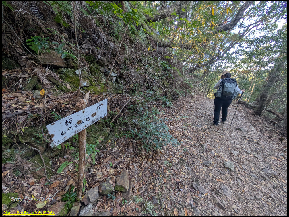 就在36號樁不遠, 就看到櫻峠(標高466M)的牌子… 本日最高點到啦! 本來以為後面就全部是下坡, 不過現實總是殘酷的, 我們又上上下下好幾個小山頭