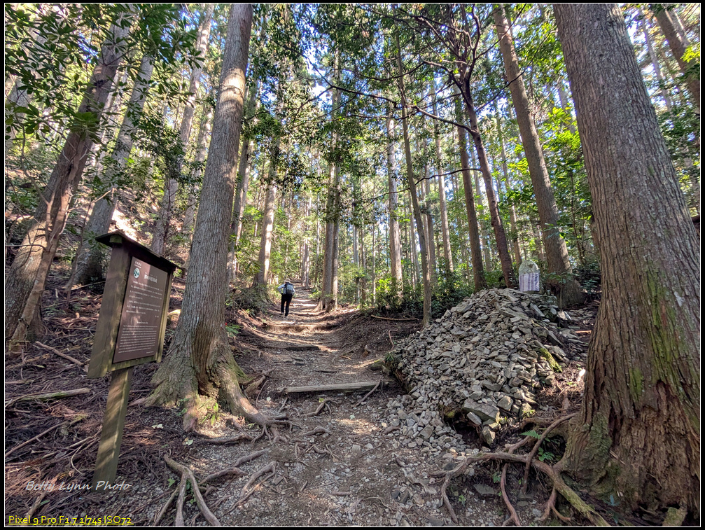 「小雲取越」的里程標是#54~#30,每500公尺一根,全程12公里,最高點是櫻峠H466M,我們出發的”小和瀨”標高約60公尺,高度落差約400公尺