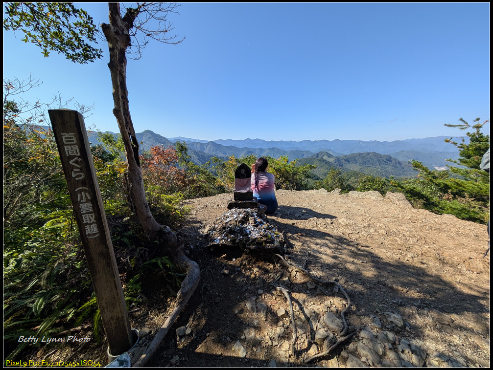 吃飽就有力氣啦! 兩人一陣趕路, 距離小和瀨出發3小時之後, 終於到了小雲取越最著名的制高景觀點 — 百間ぐら(標高460M)
