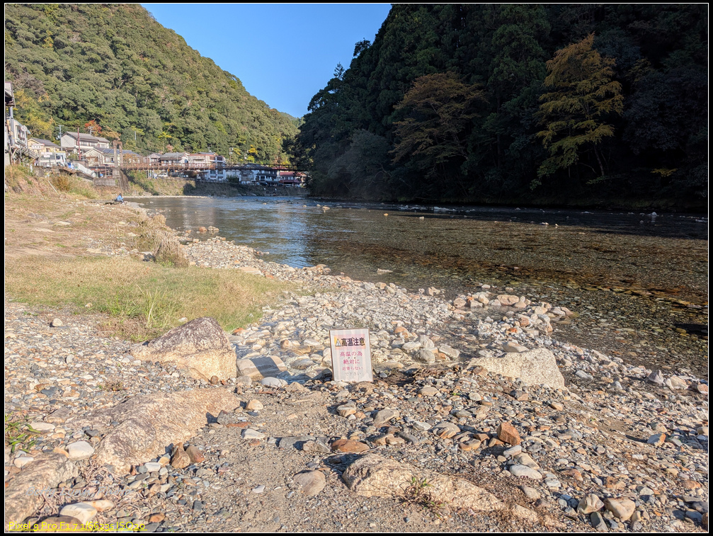 據說要泡到太陽下山前, 欣賞傍晚河上煙氣朦朧的樣子, 但11月中的傍晚就超冷… 還是回旅館泡溫泉卡素西
