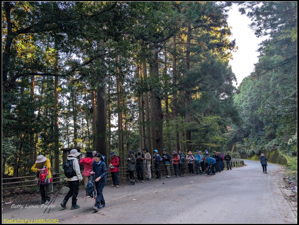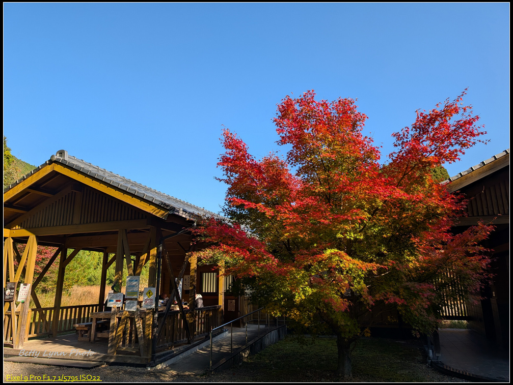 發心門巴士站有個大休息區, 還有洗手間, 沒想到我們一下車, 就給個大驚喜… 這紅葉超艷麗! 一堆人在樹旁卡位拼命拍照, 我等超久才等到幾秒鐘的淨空