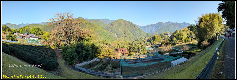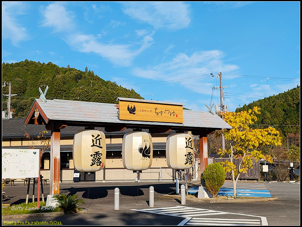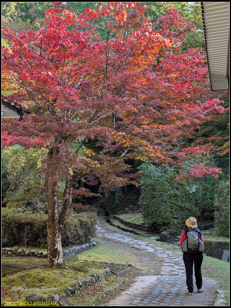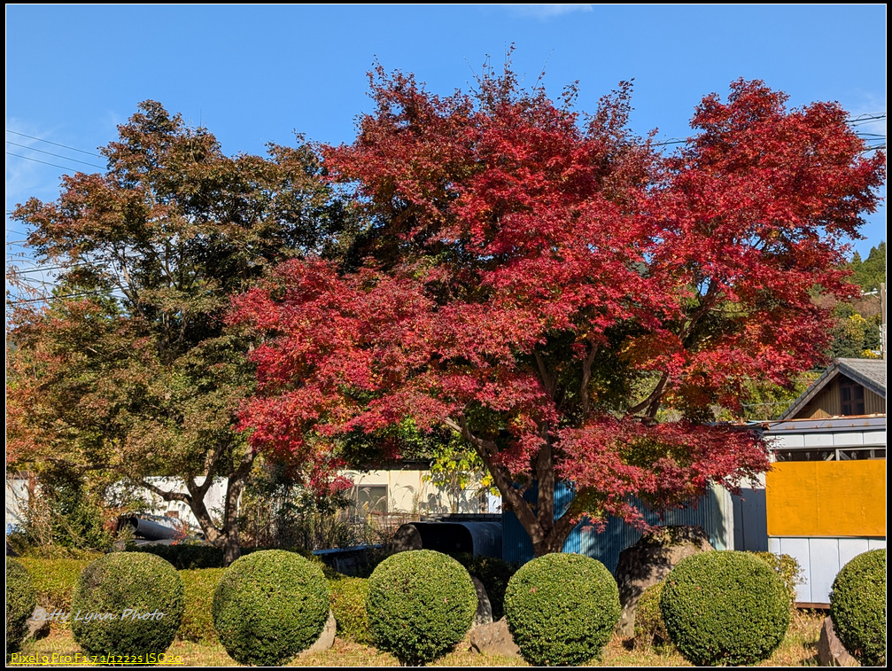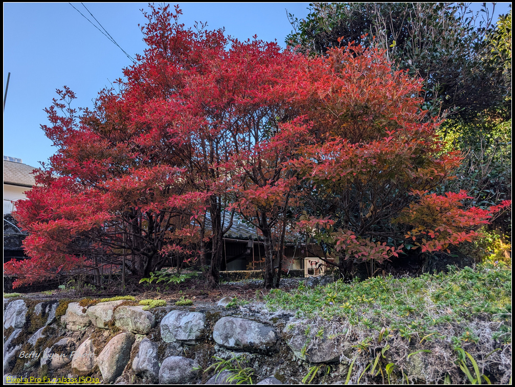我看過網路上的照片真的是一片紅, 但我們來的時間早了幾天, 紅葉從前面一路燒過來, 但茶屋這裡就偏偏火候沒到位還差幾天, 現在只有微黃