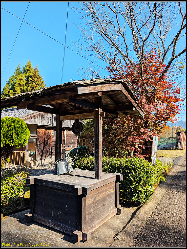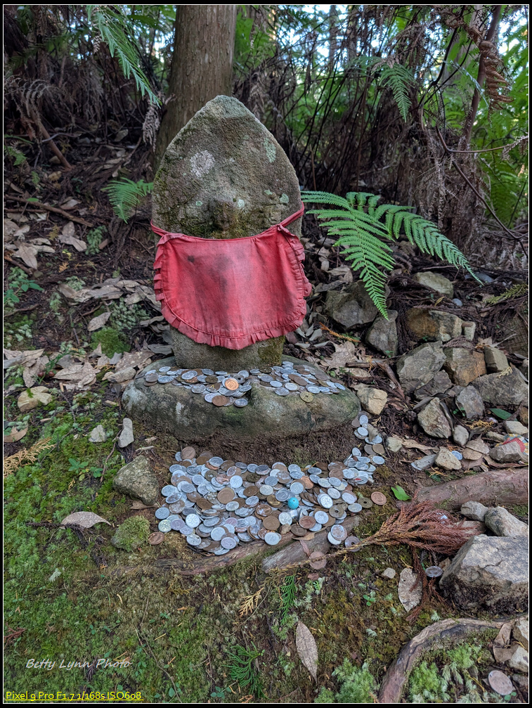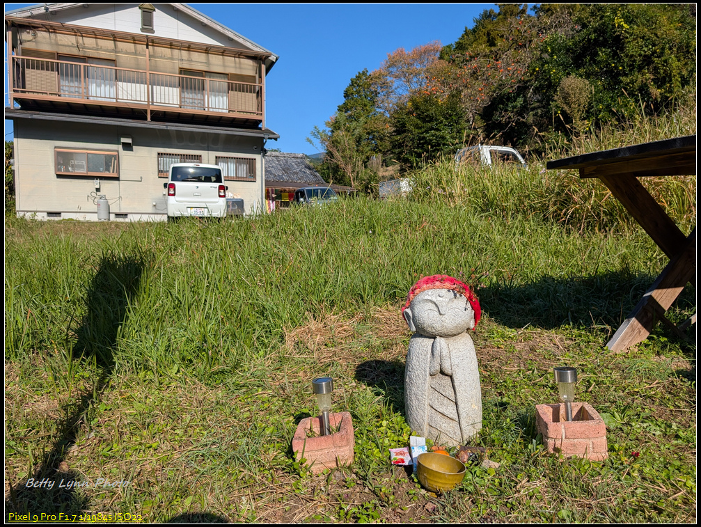 水井旁有尊地藏… 日本的地藏菩薩大多是為夭折或未出生嬰靈的引路者與旅人的守護神, 人們會為祂掛上紅布(稱為「前掛け」), 主要是因為紅色在日本文化中自古就有避邪的意味, 能驅除惡靈。