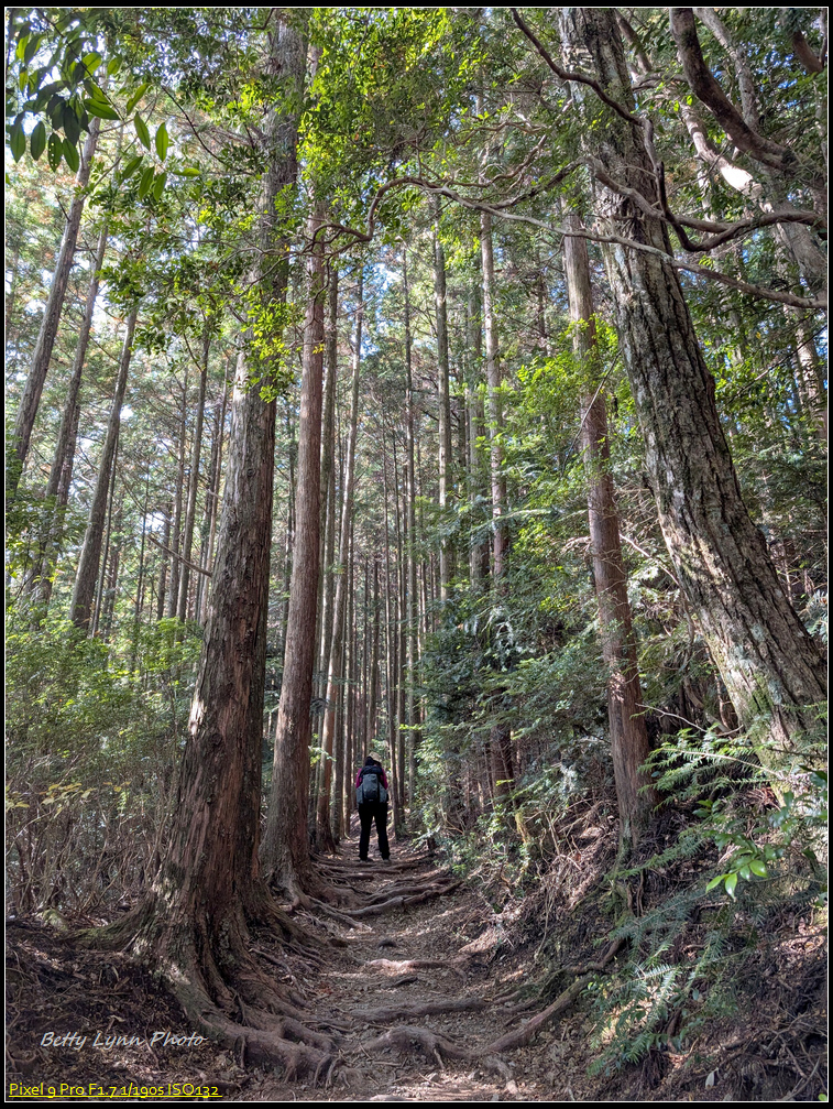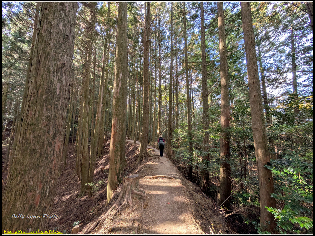 中邊路的標準風景 : 杉樹+山徑… 因為朋友說想拚一下早一點的巴士, 所以我們快快吃完就進入趕路模式~