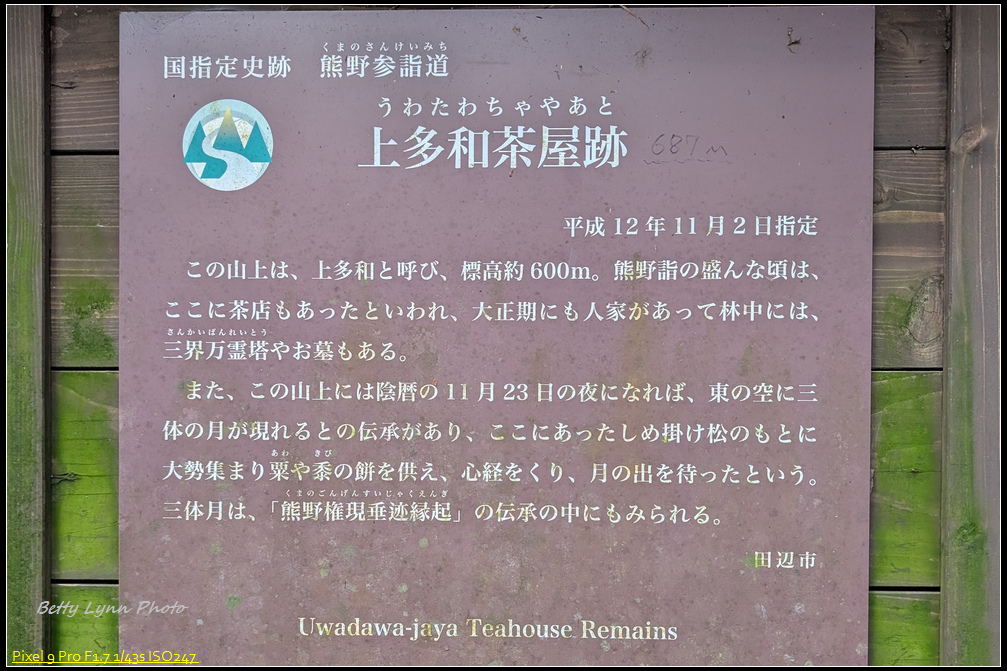 ps. 純粹自high, 這樣算是有順便沾到小辺路(第2天的三軒茶屋跡) & 大辺路(田辺的鬪雞神社)的一點邊