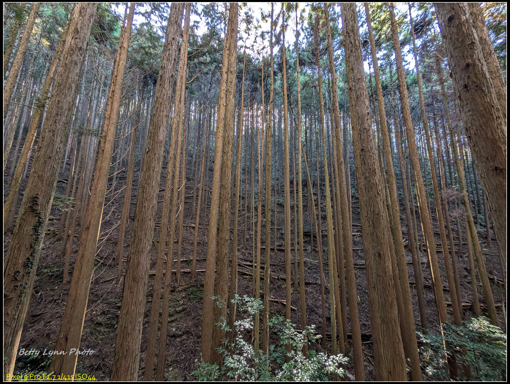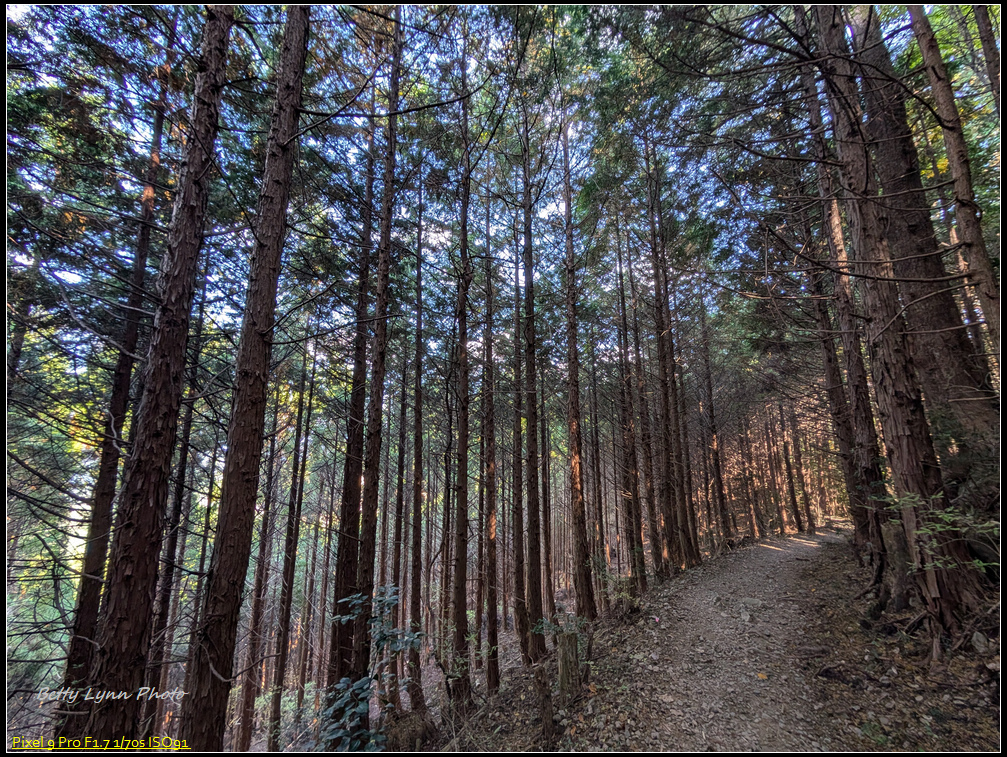 這區的杉樹不知為何大部分都沒有枝椏, 所以整片樹林看起來好乾淨… 全部是平行線!