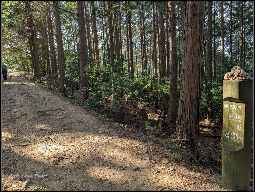 中川王子神社早就損毀消失, 現在只剩下一塊由紀州藩豎立的「中川王子」的石碑, 這邊可以看到原始的中辺路從上面走, 現在步道改成在下面, 我們就懶得上去晃啦!