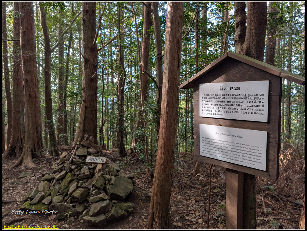 「剣ノ山経塚跡」標高371米,從這裡到滝尻王子距離1.6km高度落差約250m上, 再度陷入陡下小碎石坡的地獄