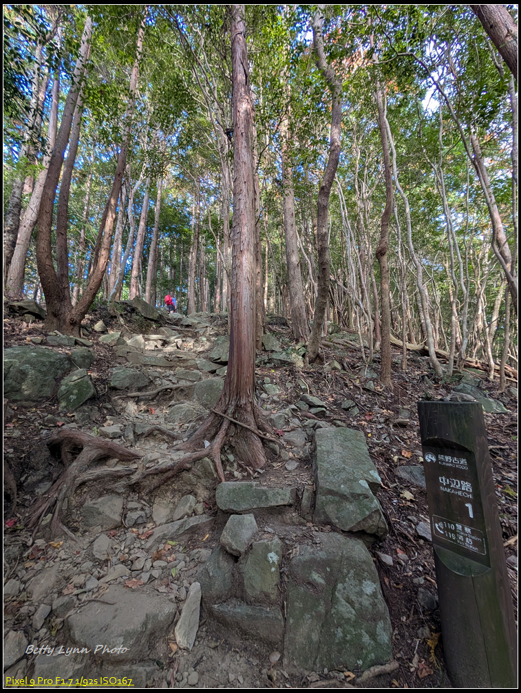 朋友非常流暢的一路往下走, 我雖然有登山杖, 但就是追不上, 還好她很有良心的記得要等我…