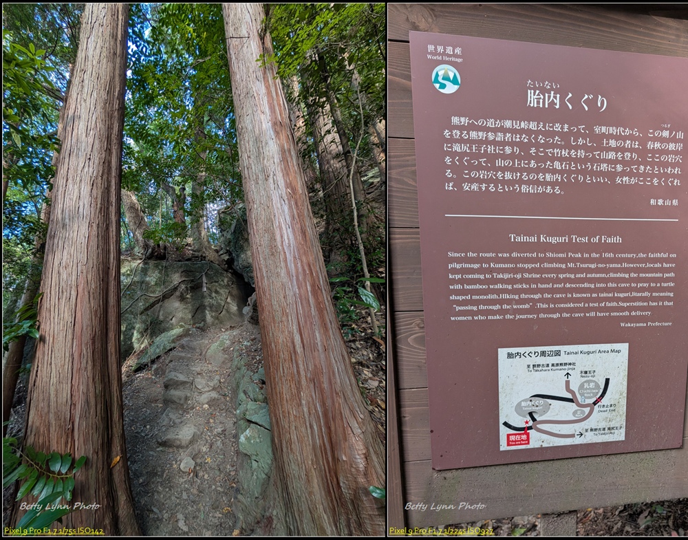 「胎內くぐり」其實講的重點是右下方這個石洞,「胎內」的意思是「子宮」,「くぐり」是潛行的意思,即穿越過子宮,也就是象徵重生為新的自我。也有傳說如果有女性穿過這個洞穴,她就能順利生產。