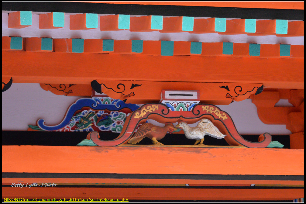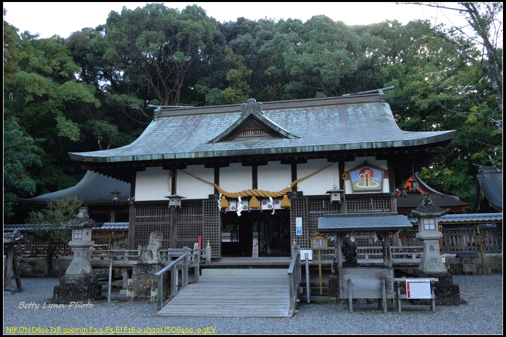 我們本來已經逛完神社回到旅館, 結果朋友在上廁所中突然慘叫… 原來她滑手機滑到鬪雞神社有大邊路的牌子, 而我們竟然沒發現, 仔細研究網路上的照片, 又叫出google實境對比, 終於確認它在大鳥居的旁邊, 偏偏我們剛剛只有走到第二鳥居, 所以只好又再度出門…